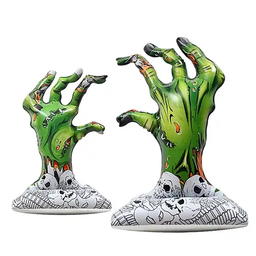 Dale un toque espeluznante a tu fiesta de Halloween con esta decoración inflable en forma de mano de zombie. Fabricada en material mylar, similar a los globos metalizados, es resistente, ligera y se mantiene firme gracias a su base inflable. 🧟 Diseño terrorÃficoUna mano de zombie que parece salir de la tierra, perfecta para crear un ambiente escalofriante en tu casa embrujada. Fácil de usarSolo necesitas inflarla y colocarla en el lugar que prefieras ¡y tendrás una decoración lista en segundos! Beneficios Material mylar tipo globo metalizado Base inflable para estabilidad Diseño terrorÃfico y realista Práctica, ligera y reutilizable Detalles técnicosMedidas: 122x82 cmCantidad: 1 unidadMaterial: Mylar (globo metalizado)Uso: Decoración temática de Halloween Perfecta para entradas, mesas o rincones temáticos 🎃 ¡Sorprende a todos con la Mano Zombie inflable! 🧟™‚ï¸