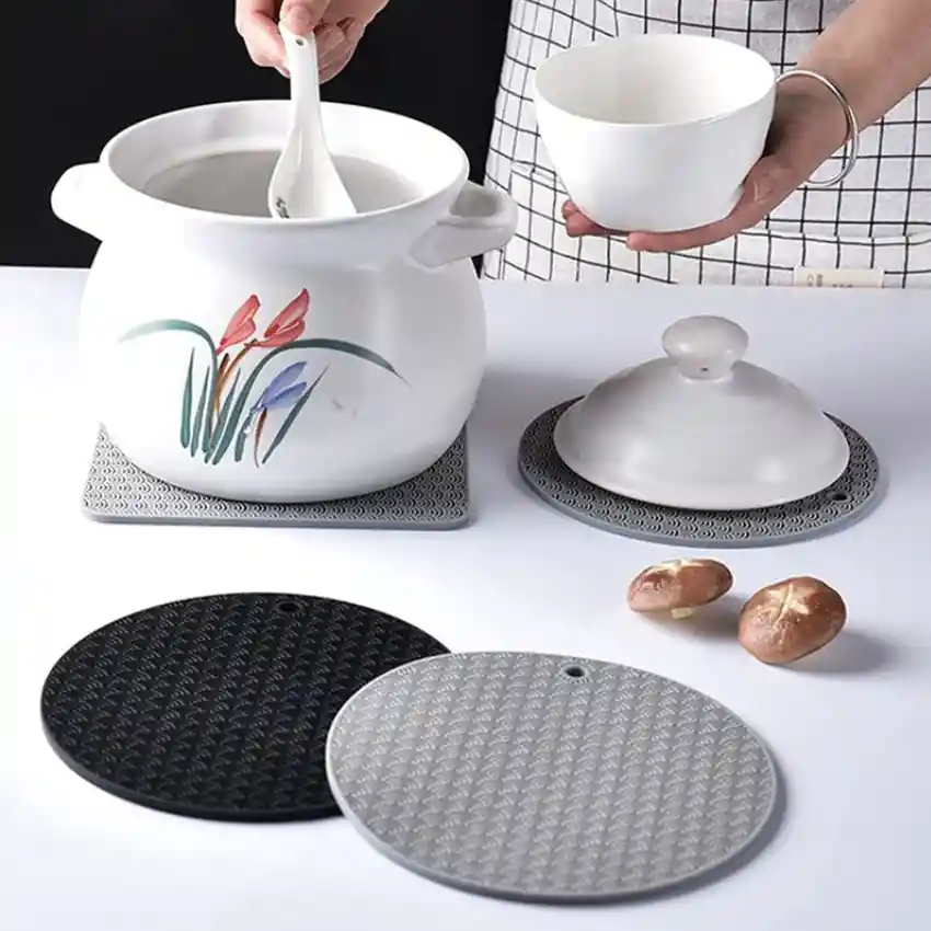 Protege superficies y manteles con estos practicos salvamanteles de silicona. Diametro: 18 cm