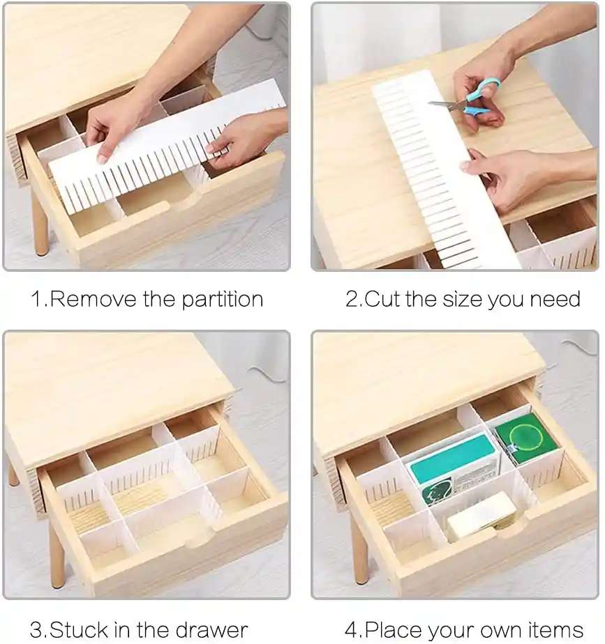 Divisor plastico de cajones y gavetas. Facilita el orden y optimiza el espacio. Se puede recortar segan las dimensiones de su caja.