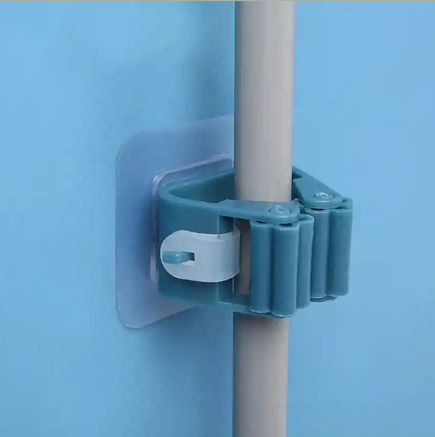Ordena escobas, traperos y mucho mas con estos practicos soportes colgadores. Se adhieren a la pared, sujetando firmemente tus implementos de limpieza y optimizando espacios.