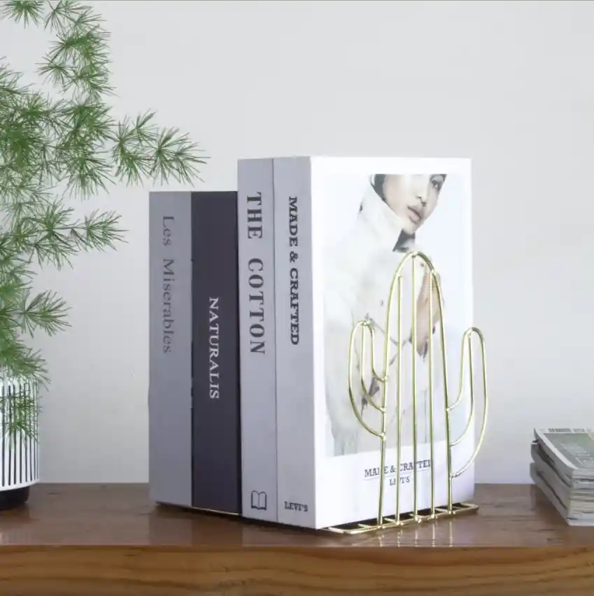 Organiza y decora tu habitaciaon u oficina con este moderno sujeta libros metalico en forma de cactus. Cada pack contiene 2 cactus. Dimensiones: Alto: 18 cm Ancho: 14,5 cm Material: Metal