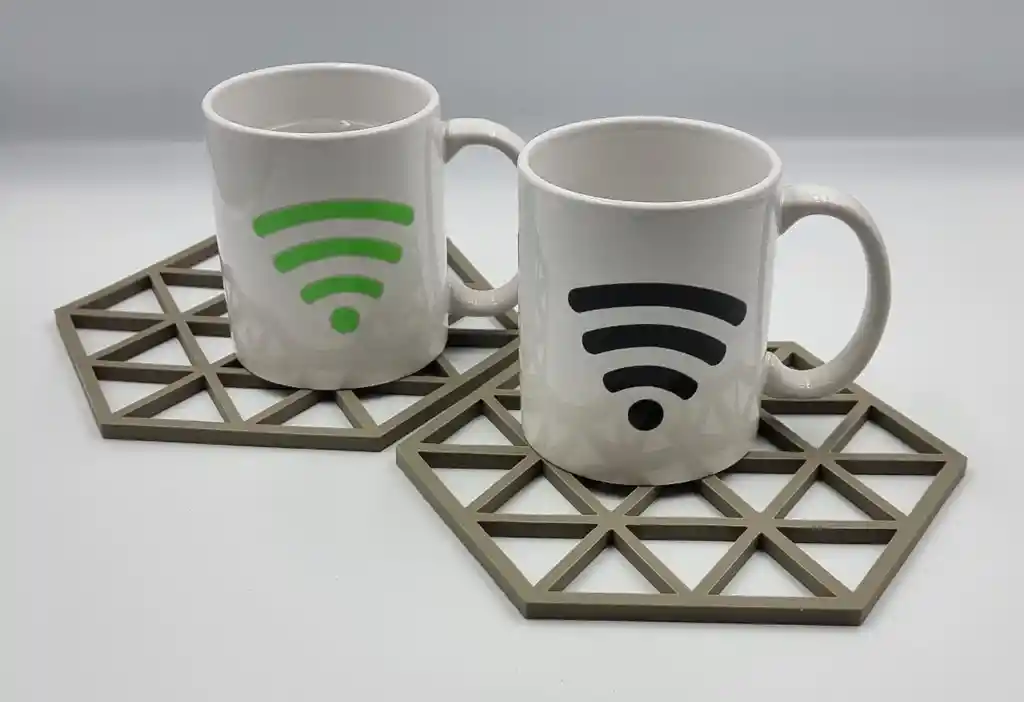 Esta taza cambia de color cuando la usas con infusiones calientes. Perfecta para acompañarte en la oficina mientras trabajas. Capacidad: 300 ml Dimensiones: Alto: 9,4 cm Diametro: 8 cm Color: Blanco con sambolo wifi negro (frao) y verde (caliente)