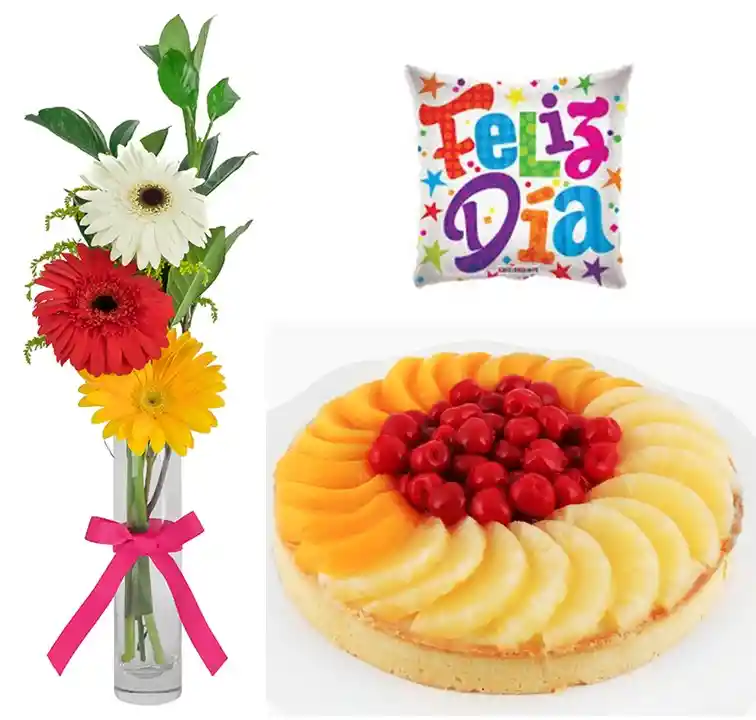 *Florerito de 3 Gerberas *Tartaleta del Día (Tartaleta de Frambuesa, Pie de Limon, Tartaleta de Frutas o Tartaleta Frutos del bosque) *Globito