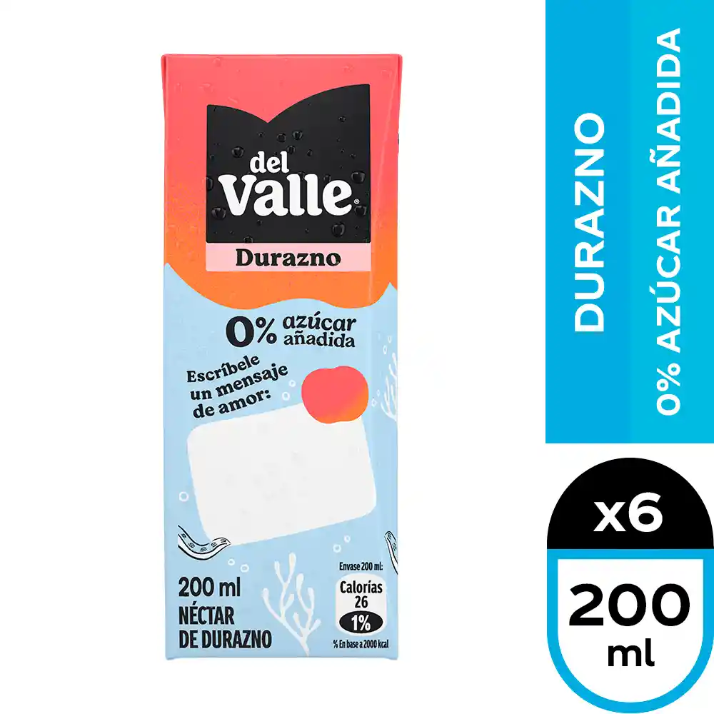 | ¿Cuánto cuesta Del Valle Sin Azúcar Añadida Durazno 6 x 200 cc? |