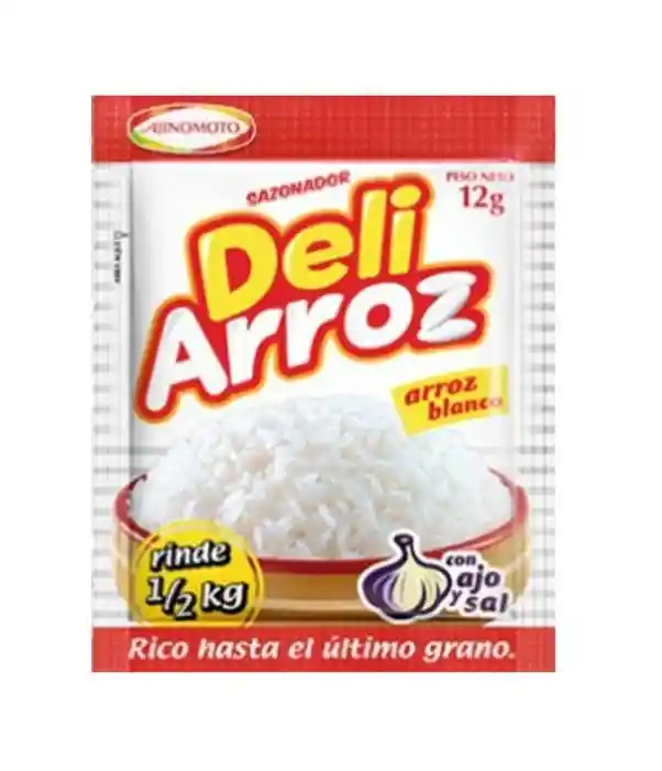 Deli Arroz es el sazonador completo para preparar arroz, contiene ajo y sal. Brinda un delicioso y balanceado sabor. Podrás preparar todas tus comidas que contengan arroz de una manera más fácil y rápida.