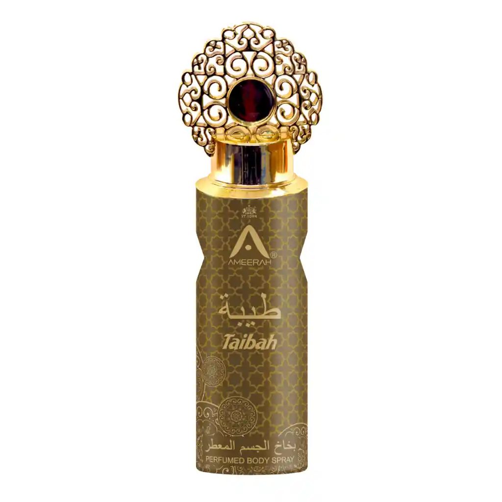 Ameerah Taibah EDP 200 ml. Es una fragancia fresca para hombres Características Destacadas Duración: Los usuarios han reportado una duración de entre 6 a 8 horas, con una proyección moderada. Estilo: Elegante y sofisticada, adecuada para ocasiones especiales o uso diario. Versatilidad: Aunque es unisex, su perfil puede ser más atractivo para quienes aprecian las fragancias suaves y amaderadas.