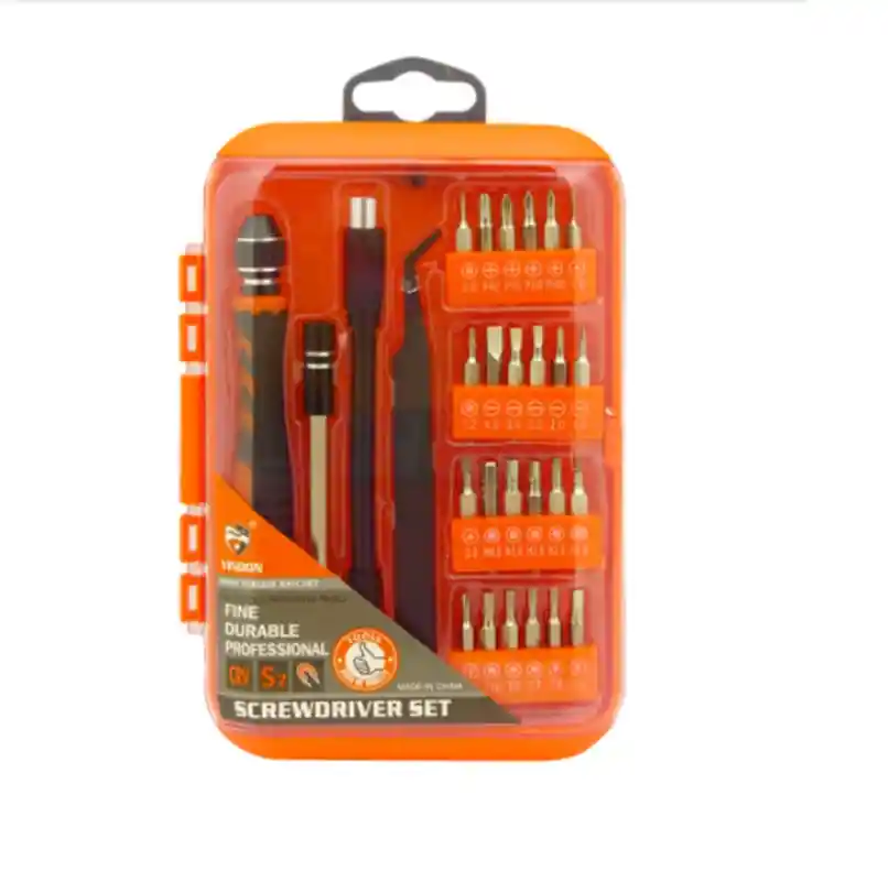 Nuevo set de destornillador multifunción 28 en 1, ideal para electrónica en general, perfecto para servicio técnico o casa, Puedes tenerlo en cualquier parte y llevarlo donde quieras, viene en su caja organizadora de gran calidad. Sus 28 piezas estan divididas en pinzas, puntas de cruz, estrellea, hexagonal, tringulo, paleta y más. Todas son metalicas de alta calidad y duración. Puedes cambiar y colocar la que te acomode para realizar tu trabajo comodamente.