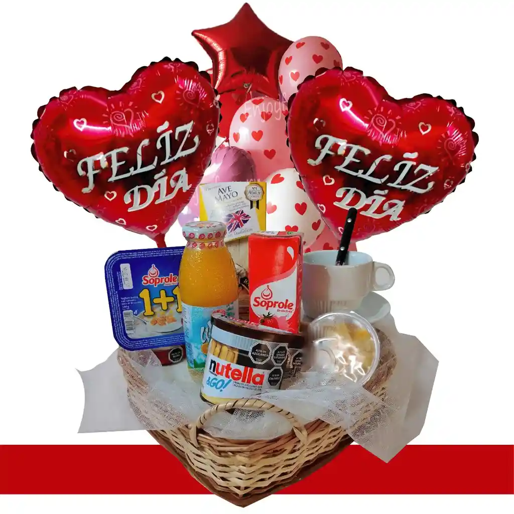 Este Desayuno, es un excelente alternativa para deleitar a Los Pequeños De La Casa La Bandeja incluye: Taza Jugo Sandwich Pan Miga Leche Saborizada Yogurt con cereal Porción de Frutas Nutella y Palitos Servicio ,Tarjeta con saludo. 3 Globitos de saludo (Motivo de acuerdo al Saludo) Todo envuelto en papel celofán. Foto Referencial