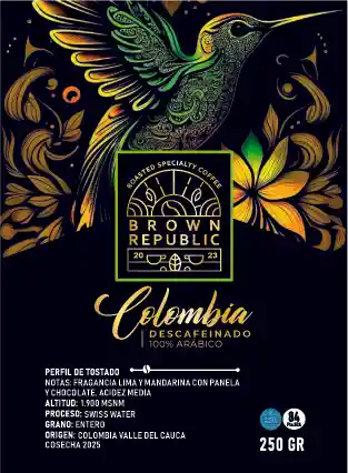 Café de especialidad Origen Colombia Variedad Arábica Caturra Proceso SWISS WATER Altura 1900 msnm Puntos 84 SCA Tueste suave alto Cosecha 2025 Este café de especialidad Colombia Caturra Descafeinado ofrece una experiencia deliciosa y suave sin comprometer el sabor. Cultivado bajo los estándares más altos de calidad, presenta notas refrescantes de lima y mandarina, acompañadas por el dulzor de la panela y un toque de chocolate que le otorgan una complejidad agradable. Gracias al proceso de descafeinado Swiss Water, el café conserva su perfil aromático intacto, sin el uso de productos químicos. Con un tostado medio, su acidez media y cuerpo suave ofrecen una taza equilibrada y reconfortante, perfecta para quienes buscan disfrutar de una bebida rica y libre de cafeína. Ideal para cualquier momento del día.