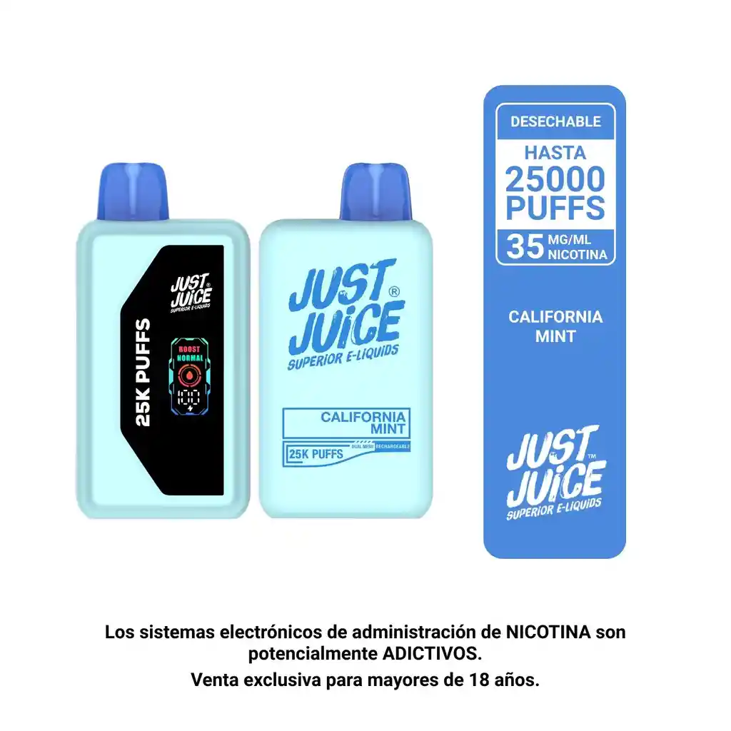 Disfruta la frescura intensa de la menta clásica en cada calada. Hasta 25.000 puffs en modo normal o 15.000 en boost, con flujo de aire regulable, batería recargable por USB-C y 35mg de nicotina.