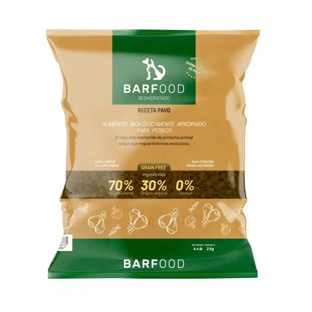 Deshidratado de pavo, barfood raza pequeña y cachorro, ingredientes 70% origen animal y 30% origen vegetal libre de granos