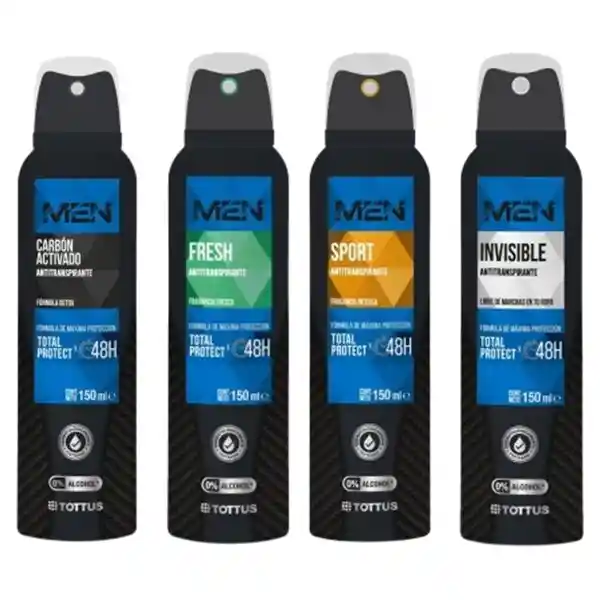 Desodorante men tottus 0% alcohol 150 ml varios aromas