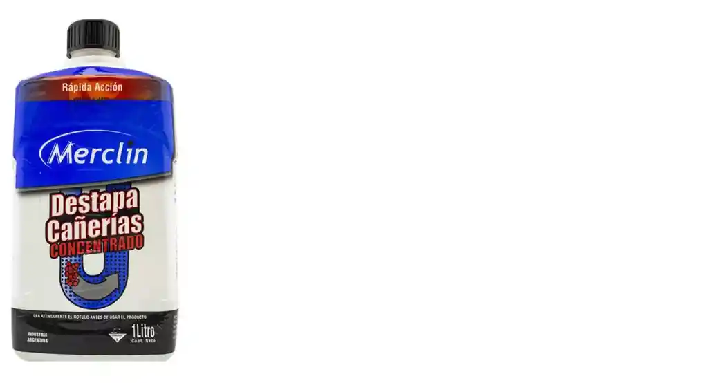 Rápida acción. Especialmente desarrollado para disolver las obstrucciones generadas por los desperdicios acumulados en el desagüe. Se recomienda aplicar cada 20 o 30 días para evitar grandes taponamientos,2-Características=Destapa cañerías líquido 500 cc,6-Origen=Argentina,3-Contenido=500 cc Recomendaciones y Precauciones - Se recomienda aplicar cada 20 o 30 días para mantener limpias las cañerías. - Utilizar protección ocular y delantal para manipular el producto. - Mantener fuera del alcance de los niños. - Mantener fuera del alcance de los animales domésticos. - Usar guantes para su aplicación. - Utilizar en ambientes ventilados. Advertencias - Peligro corrosivo - No mezclar con sustancias químicas - Mezclar solo con agua. - Nociva su ingestión.