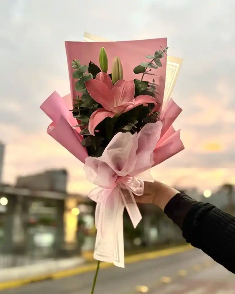 "La elegancia también vive en lo simple." Ramo compuesto por una vara de liliums, cuidadosamente presentada para destacar su forma y delicadeza natural. Acompañado de un envoltorio que realza su estilo, este arreglo es ideal para regalar un detalle sutil, elegante y lleno de significado en cualquier ocasión especial.