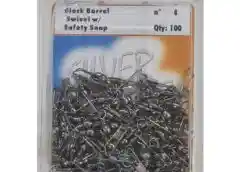 DESTOR+SNAP S.WAVE NEGR #8×100 / Marca SILVER WAVE / Tipo Destorcedor más gancho / Color NEGRO / Medida Nr. 8 / Peso 0,55 grs / Largo 3,5 cms / Resistencia 9 kilos (20 Libras) / Material acero inoxidable / Bolsa de 100 destorcedores / Peso Blister de 100 destorcedores 55 grs / Snap Swivel / Producto de Korea