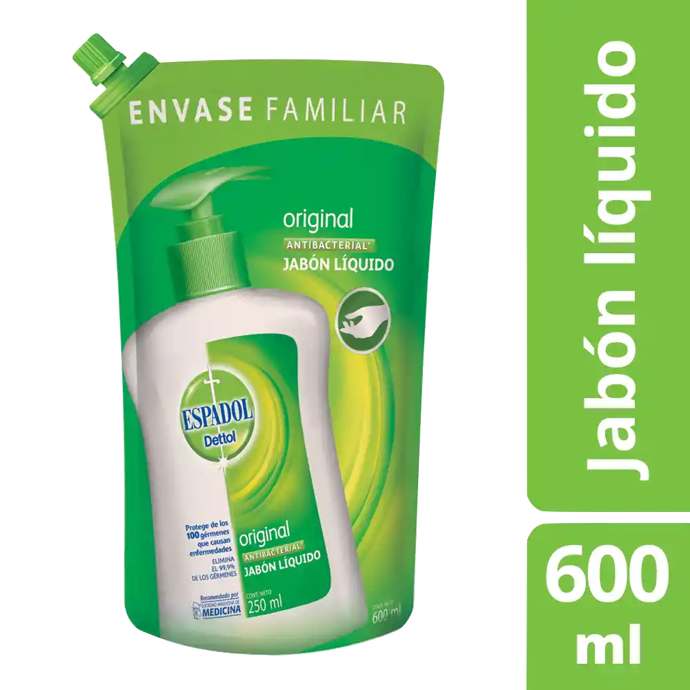 Dettol Espadol ®El Jabón Líquido Humectante Combina la Protección de Espadol con Agentes Hidratantes que Dejan la Piel Suave e Hidratada. Dándote Además 10 Veces Más Protección que Un Jabón Líquido Común, Protegiendo a Tu Familia Todos Los Días. Su Fórmula Exclusiva, Elimina el 99.9% de Los Gérmenes. *Producto Sin Acción Terapéutica.