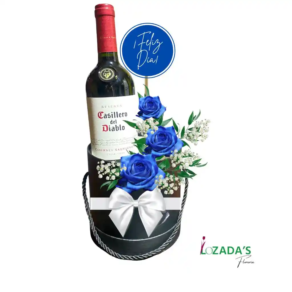 Haz que este Día del Padre sea inolvidable con nuestro elegante arreglo que combina la sofisticación del vino con la belleza de las flores. Esta exclusiva presentación incluye una botella de vino tinto Casillero del Diablo – Cabernet Sauvignon, acompañada de un delicado arreglo floral con rosas azules, gipsófila y follaje fresco, todo en una elegante caja negra decorada con un lazo blanco y un toque festivo. 🍷 Perfecto para el papá que aprecia los buenos momentos y el buen gusto. 🌟 Disponible solo por tiempo limitado en Lozada’s Florería.