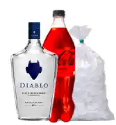 Pisco Diablo 40 ° transparente acompañado de Hielo y Coca Zero 1,5lt