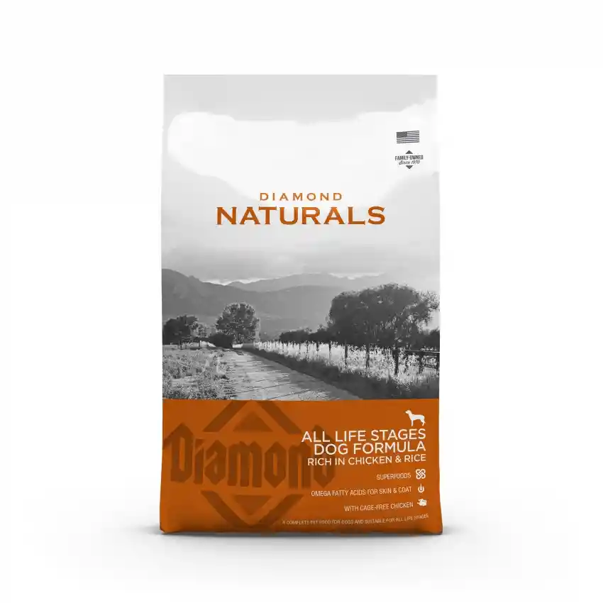 Diamond Naturals All Life Stages es un alimento para perros de todas las edades cuyos ingredientes provienen de pollos criados en libertad, superalimentos conocidos por sus múltiples beneficios para un bienestar general, además de niveles garantizados de zinc, selenio, vitamina E y probióticos. Diamond Naturals se trata de proporcionarle a tu perro una comida para mascotas de la mejor calidad; es por eso que solo se asocia con fuentes responsables y confiables. Al asociarse con las fuentes confiables seleccionadas, Diamond Naturals puede garantizar que sus recetas de alimentos incluyan ingredientes de la más alta calidad, proporcionando a tu mascota nutritivo y de alta calidad. ¡Nutra Gold ahora es Diamond Naturals! Beneficios Las proteínas y las grasas proporcionan energía a tu perro para mantenerse fuerte Con pollo sin jaula para un gran sabor y nutrición. Niveles garantizados de zinc, selenio y vitamina E Mejorado con superalimentos y probióticos garantizados