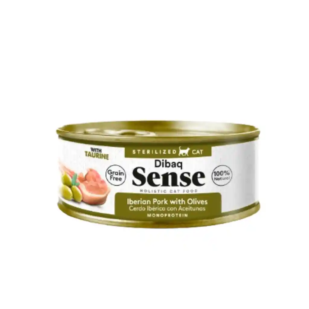 Dibaq Sense Cat Latita de Cerdo Ibérico y aceitunas para gatos adultos y esterilizados es una deliciosa receta grain free elaborada con carnes frescas de cerdo ibérico, aceitunas y taurina, un aminoácido esencial para el correcto funcionamiento de los gatos. Textura Fillets. Dibaq Sense Cat Latas es una exclusiva gama hipoalergénica con ingredientes 100% Natural con hasta un 60% de carnes frescas (salmón, atún, pollo, pato, jabalí…), frutas y verduras frescas (zanahoria, manzana, papaya, calabaza, patatas, arándanos) extracto de yuca para neutralizar olores y prebióticos para mejorar su digestión. Además, las latitas Dibaq Sense Cat están elaboradas en textura Fillets, mucho más atractivo al paladar de los gatos ya que les permite mordisquear los trocitos desmigajados. Todos los ingredientes son en origen aptos para el consumo humano y de primera calidad. Además, intentamos que los ingredientes sean de proximidad para reducir la huella de carbono. Una completa gama de alimentos completos para gatos. Recetas Grain Free con carnes frescas. Todas elaboradas sin cereales para prevenir alergias o intolerancias. Además, podemos completar el menú de latitas mezclándolas con las deliciosas croquetas Grain free. La auténtica experiencia holística y 100% Natural que disfrutarán con los 5 sentidos. INFORMACIÓN NUTRICIONAL Composición Cerdo 55%* (Del cual cerdo ibérico 45%), aceitunas 4%*, sustancias minerales. *Ingredientes naturales. Componentes analíticos Proteína bruta 9,1%, Grasa bruta 3%, Fibra bruta 1%, Materia inorgánica 1,8%, Humedad 84,5%. Energía metabolizable 640 kcal/kg. Aditivos Aditivos nutricionales/kg: Aminoácidos: Taurina 120 mg.