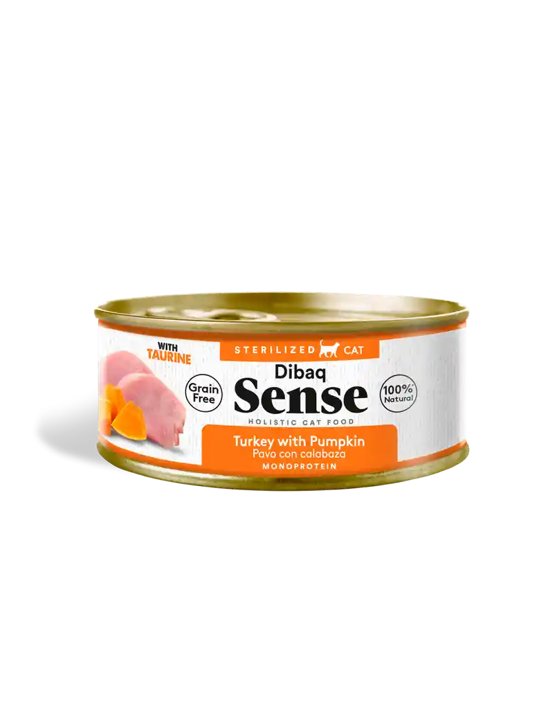Alimento complementario hipoalergénico para gatos adultos y gatos esterilizados con carnes frescas de pavo, bacaladilla y calabaza. Receta sin gluten Composición Pavo 51%*, bacaladilla 4%*, calabaza 2%*, sustancias minerales. *Ingredientes naturales. Componentes analíticos Proteína bruta 8,7%, Grasa bruta 8%, Fibra bruta 0,8%, Materia inorgánica 1,5%, Humedad 81%. Energía metabolizable 1.006 kcal/kg. Aditivos Aditivos nutricionales/kg: Aminoácidos: Taurina 100 mg. CONTIENE: 70 gramos.