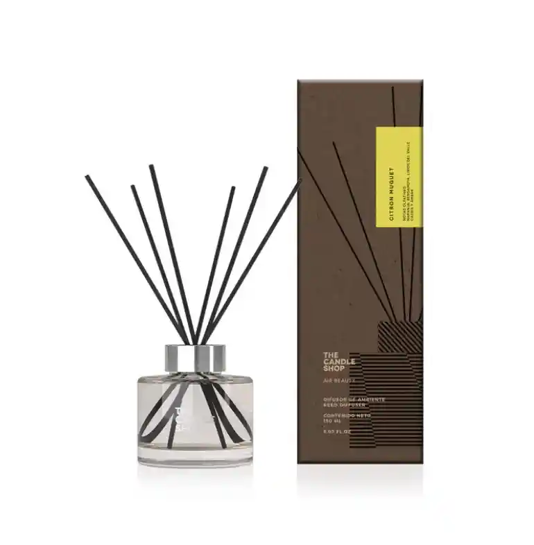 Difusor de Ambiente en envase de vidrio con varillas sintéticas negras Contenido Neto: 150 ml. Presentación en caja individual. Duración estimada: Aproximadamente 30 días, dependiendo de la fragancia elegida y las condiciones de humedad del ambiente donde se lo utilice.