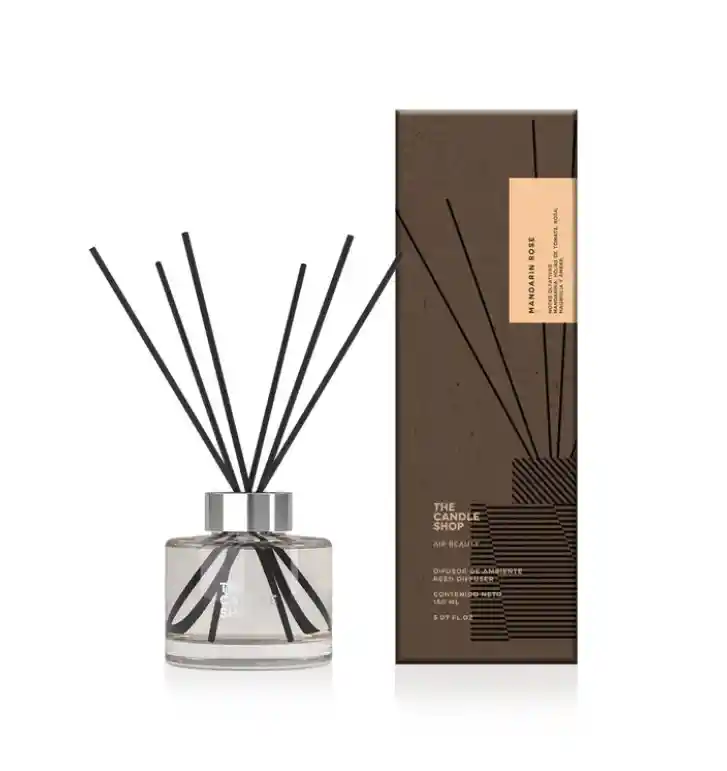 Difusor de Ambiente en envase de vidrio con varillas sintéticas negras. Contenido Neto: 150 ml. Presentación en caja individual. Duración estimada: Aproximadamente 30 días, dependiendo de la fragancia elegida y las condiciones de humedad del ambiente donde se lo utilice.