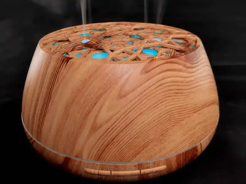 Difusor de Aroma con proyección de luz y parlantes. Contiene conexión Bluetooth para escuchar música desde el celular. También contiene APP para controlar colores e intensidad de aroma. Amplio contenido interno para líquido (hasta 300ml), diseño de proyección y colores variados de iluminación, atractivo formato en simil madera natural vetada. Un producto para disfrutar y relajarse, que no puede faltar en tu hogar u oficina.