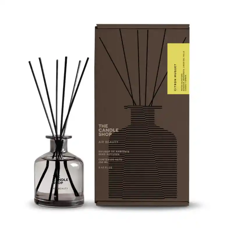 Difusor de Ambiente en envase de vidrio con varillas sintéticas negras Contenido Neto: 250 ml. Presentación en caja individual. Duración estimada: Aproximadamente 60 días, dependiendo de la fragancia elegida y las condiciones de humedad del ambiente donde se lo utilice.