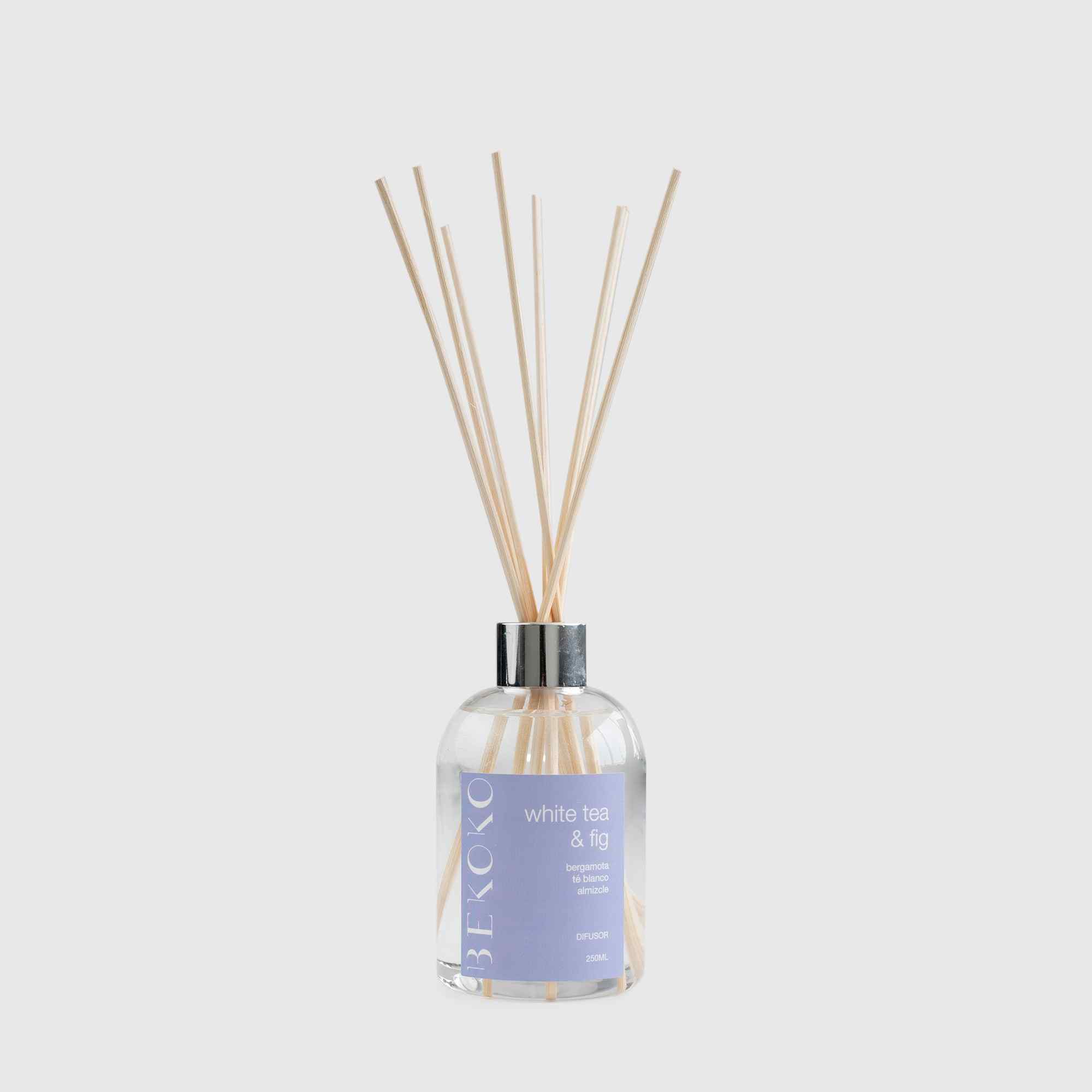 El Difusor Ambiental con Varillas White Tea & Fig, tiene un aroma cítrico floral, con notas olfativas a bergamota, te blanco y cedro. Disfruta de un viaje sensorial con la frescura de la bergamota, la serenidad del té blanco y la profundidad del cedro. Deja que el aromatizante White Tea & Fig impregne tu hogar u oficina con su fragancia encantadora y crea un ambiente que sea un verdadero oasis de tranquilidad y elegancia.- Notas De Salida: Notas Citricas De Bergamota, Cascara De Lima U Notas De Te- Notas De Corazón: Notas Te Blanco, Muguet Y Jazmin- Notas De Fondo: AlmizcleFabricados con ingredientes naturales de alta calidad, SIN químicos dañinos, envases elegantes y sustentables, 100% Cruelty-Free. ¿Como usar difusor de aromas con varillas?- Quita la tapa y el tapón del envase. - Coloca la tapa nuevamente en el frasco. - Coloca las varillas en el líquido. - Ajusta la intensidad girando las varillas. - Disfruta del aroma que se dispersa en tu espacio.¿Que intensidad y duración tienen las varillas aromáticas?La intensidad del aroma depende de la cantidad de varillas utilizadas. Introduce las varillas en el envase y gíralas una vez por semana para optimizar el uso de la fragancia y podrás aromatizar tus espacios de manera permanente, por hasta 6 ⁓ 8 semanas. ¿Dónde utilizar las varillas con aromas?Idealmente los difusores ambientales son utilizados en espacios que no sean muy grandes, como por ejemplo un dormitorio, un living pequeño, entrada de la casa o un baño.