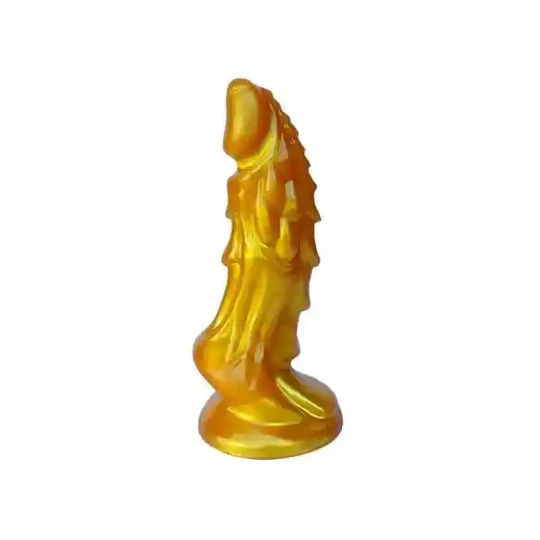 Nueva colección de dildos temáticos. Modelo Dragon, de color dorado. Cuenta con ventosa para una experiencia más versátil. Destaca su forma y sus prominentes texturas, que harán un deleite a quienes se atrevan a probarlo. Medidas: *Largo total: 20 cm. *Largo Insertable: 19 cm. *Diámetro: 5 a 5.5 cm.