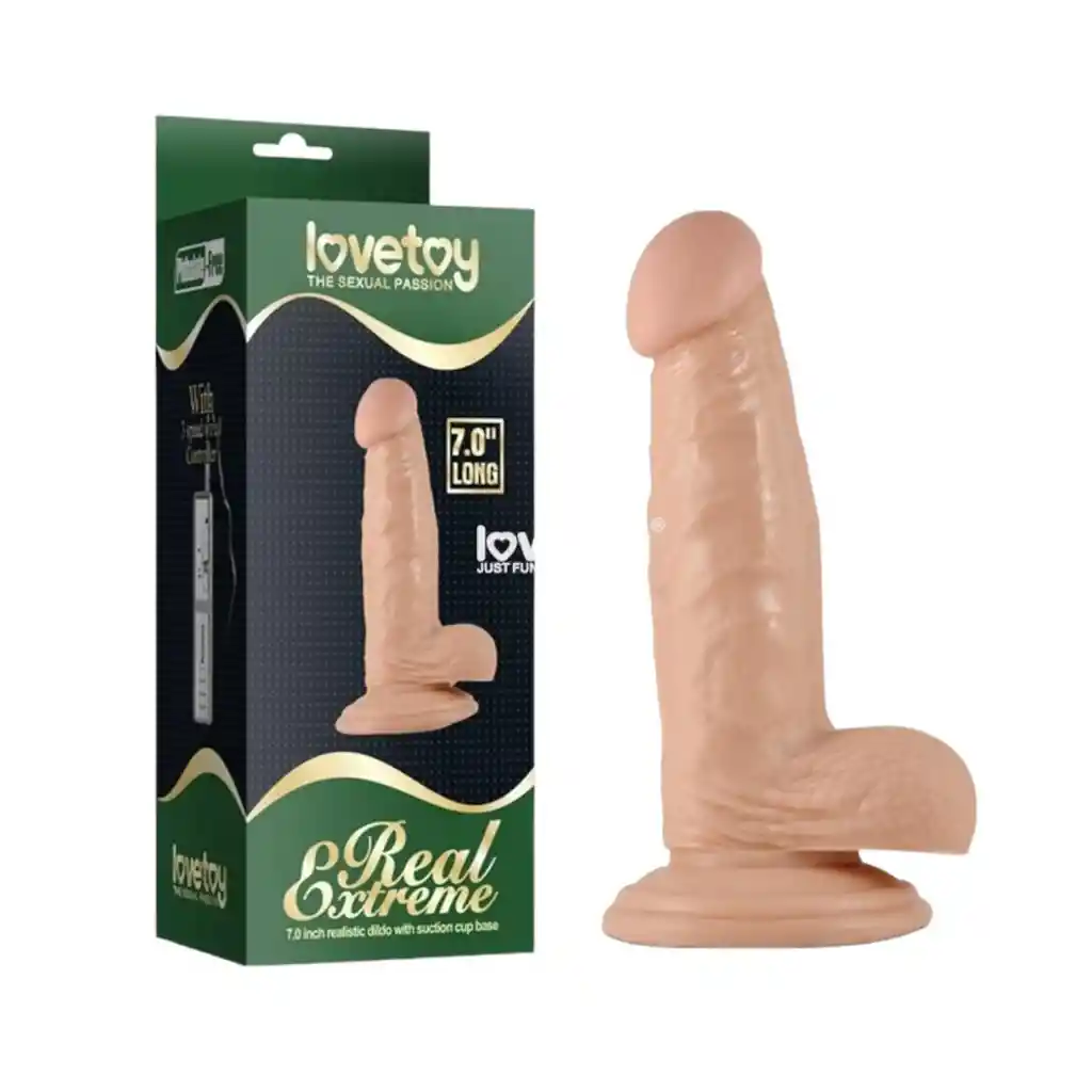 El Dildo Real Extreme de Lovetoy de 18 cm, es un dildo realista con textura venosa y suave al tacto, también posee una poderosa ventosa para que la puedas pegar en superficies planas y lisas que te proporcionará placer sin tener que utilizar tus manos... Características: * Color: Rosa Claro * Largo Total: 18 cm * Largo Insertable: 13 cm * Diámetro máx: 3.5 cm * Material: Silicona de grado médico * Certificación: CE Recomendaciones: * Utilizar lubricante a base de agua o hibrido * Si es de uso personal no es necesario utilizar preservativo * Lavar antes y después de cada uso con agua tibia y jabón neutro * Dejar secar y guardar en un lugar seco y libre de humedad