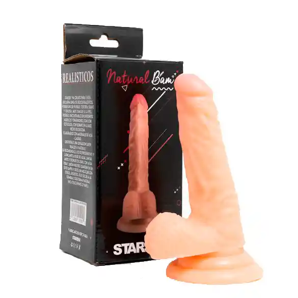 Natural Bam es un Dildo realista de tamaño moderado, con detalle de venas a lo largo del pene y testículos texturizados que terminan en una base de sopapo, pudiendo posicionarse donde se desee, incluyendo duchas , arneses y superficies verticales lisas. Material: Silicona Color: Piel Diseño realístico Largo Total: 15,0cm Largo insertable: 11,0cm Diámetro: 3,2cm