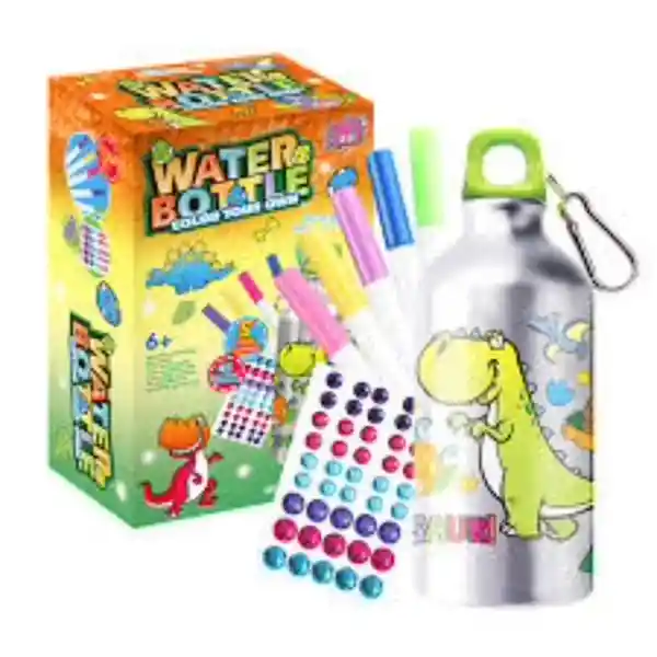 Dinosaurio Botella Decora Con Diamantes y Plumones de Colores
