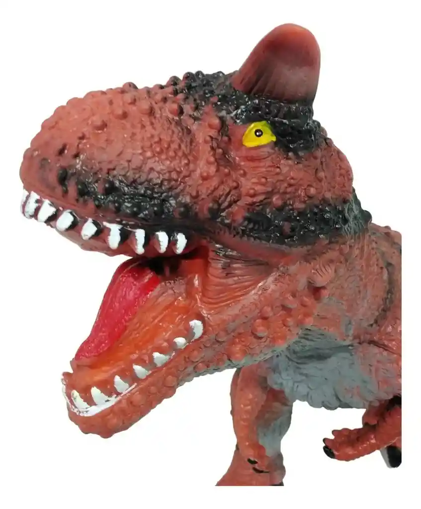 Dinosaurios gigantes CARNOTAURUS con sonido, ruge como dinosaurio. Pilas incluidas. Material: Goma flexible. Medidas: 70x45cm aprox.