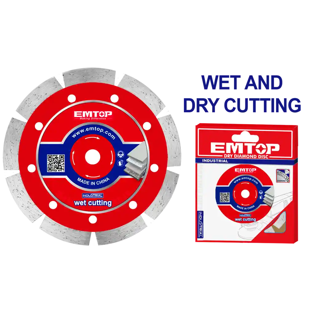 230 (9" ) X22mm Ancho del disco: 10 mm Usos: ladrillos, caliza, piedra, diamante, baldosa, concreto, granito, mármol. Embalado por la caja de color