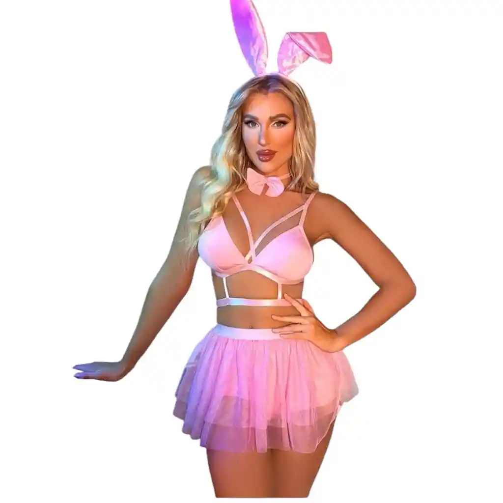 Si te gusta interpretar diferentes personajes haz llegado al lugar correcto, te traemos este hermoso disfraz de conejita. Características: * Color: Rosa * 95% Poliéster * 5% Elastano * Sin Almohadillas Recomendación: Lavar a mano, no usar secadora