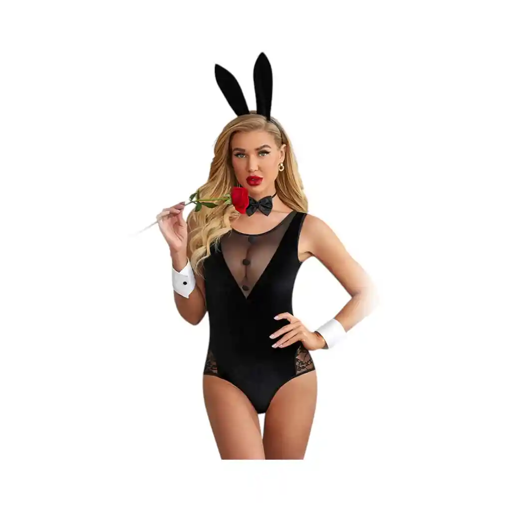 Sensual y elegante disfraz de conejita, ideal para juegos de rol y ocasiones especiales. Confeccionado en body de malla negra con transparencias en el escote y delicados detalles de encaje en los costados, realza la figura de forma provocadora. Incluye una coqueta cola de conejo de felpa desmontable en la parte trasera, perfecta para seducir y sorprender. El set se complementa con accesorios clásicos que elevan el look y lo convierten en un disfraz completo, cómodo y altamente atractivo. Características: Talla: Única (Sirve para talla S). Color Negro. Diseño: Malla semitransparente con encaje Material: 65% algodón + 35% poliéster. Incluye: Body, cintillo con orejas de conejo, lazo, cola y brazaletes blancos. Sin forro ni barba metálica. Medidas: Largo body: 53 cm. Ancho body: 31 cm. Importante: Lavar a mano. Detalles de transparencia. ¡ATENCIÓN! Por motivos de higiene y seguridad, y dado que se trata de un producto de uso personal e íntimo, no se realizan cambios ni devoluciones de ésta prenda. Te recomendamos revisar detalladamente las tallas, medidas y características antes de realizar tu compra para asegurar la mejor elección.