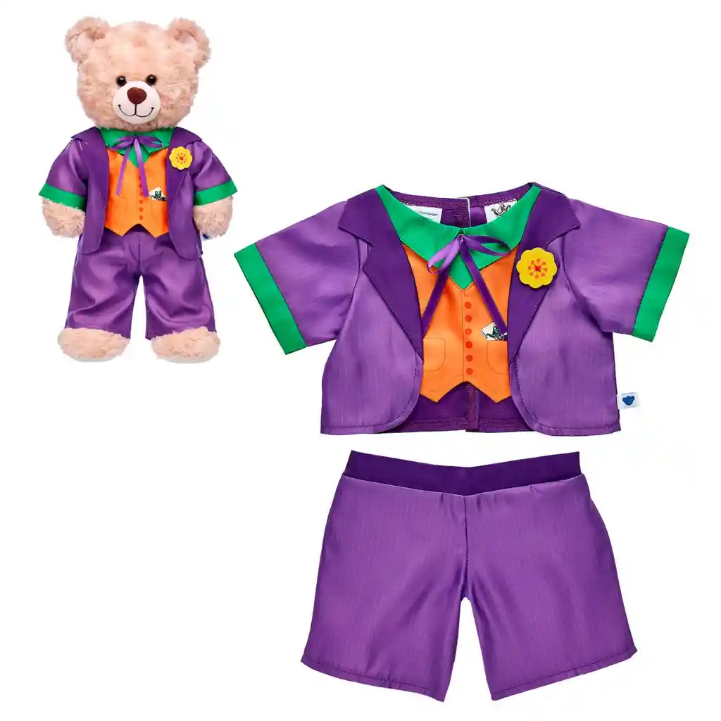 ¡Dale a tu mejor amigo un pequeño aspecto de super villano disfrazándolo como uno de los villanos más peculiares del mundo DC! Este hermoso disfraz de chaqueta y pantalones morados a juego le darán ese toque especial que solo el Joker tiene. Este traje es ideal para peluche Build a Bear preferido, se verá como todo un ícono del comic. A tu peluche le encantará lucir muy bien mientras disfrutan de inmemorables jornadas de diversión.