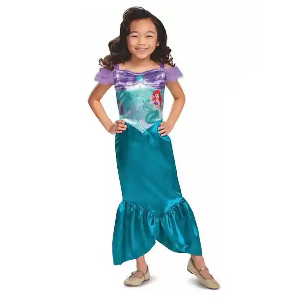 Este vestido cuenta con un corpiño de satén y organza con arte de purpurina y un cuello superpuesto de malla. Cintura de satén con lámina dorada Talla del disfraz de 4 a 6 años.