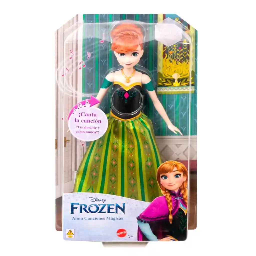 Inspirada en Anna, el personaje favorito de las fans de la película Frozen de Disney, ¡esta muñeca está lista para cantar su canción característica! Las niñas querrán unirse mientras la muñeca de Anna canta “Finalmente y como nunca”. Con su collar y atuendo clásico del castillo, esta muñeca de Anna canta con solo presionar un botón. Las fans pueden recrear sus momentos musicales favoritos o crear nuevas aventuras. La muñeca no se puede mantener de pie por sí sola. Los colores y las decoraciones pueden variar.
