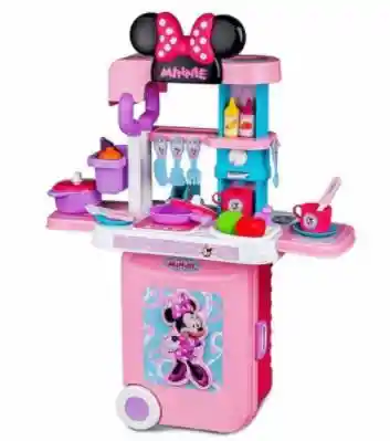 No te quedes fuera de la diversión con este juguete 3 en 1 de Minnie. La maleta y la cocina de Minnie con accesorios están completas. Además, puedes llevarlo a cualquier parte. Viene con varios accesorios de cocina para el juego perfecto. Tamaño (L x H x W): Cerrado: 25,5 x 38 x 16,5 cm, montado: 50,5 x 35 x 28,5 Soporte montado: 50 x 68 x 22 cm. Contenido: 1 maleta de cocina Minnie, 1 sartén, 1 sartén, 2 salsas, 2 tazas, 2 cuchillos, 2 cucharas, 2 tenedores, 1 cuchara, 4 platos, 1 berenjena, 1 zanahoria, 1 litro, 1 huevo frito, 1 Limón, 1 grifo, 2 recipientes, 1 tazón para beber. Recomendación: para niñas mayores de 4 años