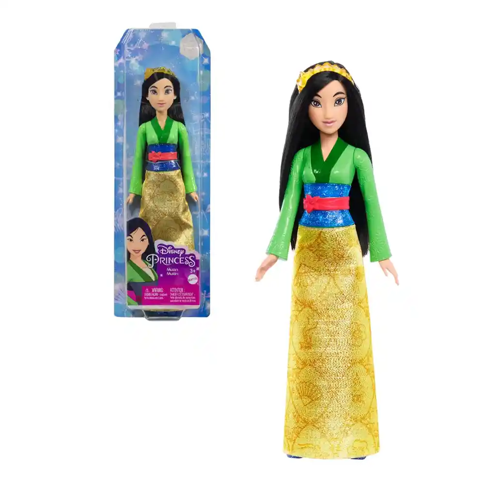 Inspirada en el personaje animado de la querida película de Disney, esta muñeca de Mulan está lista para probar que cualquier cosa es posible.Esta muñeca de moda que se puede poner en distintas poses usa su distintiva moda de la película, incluidos tiara y zapatos removibles.Su atuendo incluye un top brillante y una falda removible con un patrón que cuenta historias, único de Mulan. Esta muñeca de Disney Princess tiene cabello largo para estilizarlo y peinarlo de forma divertida.Es el regalo perfecto para que las niñas recreen sus momentos favoritos de las películas o inventen sus propias aventuras."