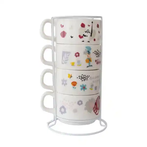 Set Disney Contiene 5 Unidades. Disney Set Tazón 4 Und. Capacidad 220 mL c/u + Soporte Alicia 1 Und.