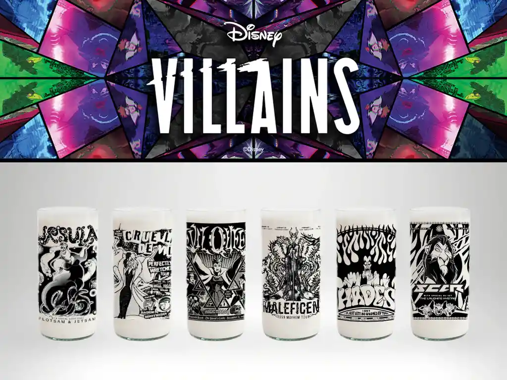 Los vasos de cada foto tienen líquidos con el propósito de destacar nuestros diseños. Cada vaso es transparente. Te presentamos el mejor line up! Imagínate haber ido a los conciertos donde los headliners sean tus Villanos favoritos! Toda esa fantasía rockera es posible con esta colección inspirada en posters de Disney Villains. Cada vaso cuenta la experiencia de cómo fue ese increíble recital. Su nombre en grande, fechas del tour, sidekicks, teloneros y lugares icónicos! Desde el Monte Olimpo hasta el Bosque Prohibido, cada afiche nos muestra su diseño único perfectamente ambientado para cada artista. Te los vas a perder?