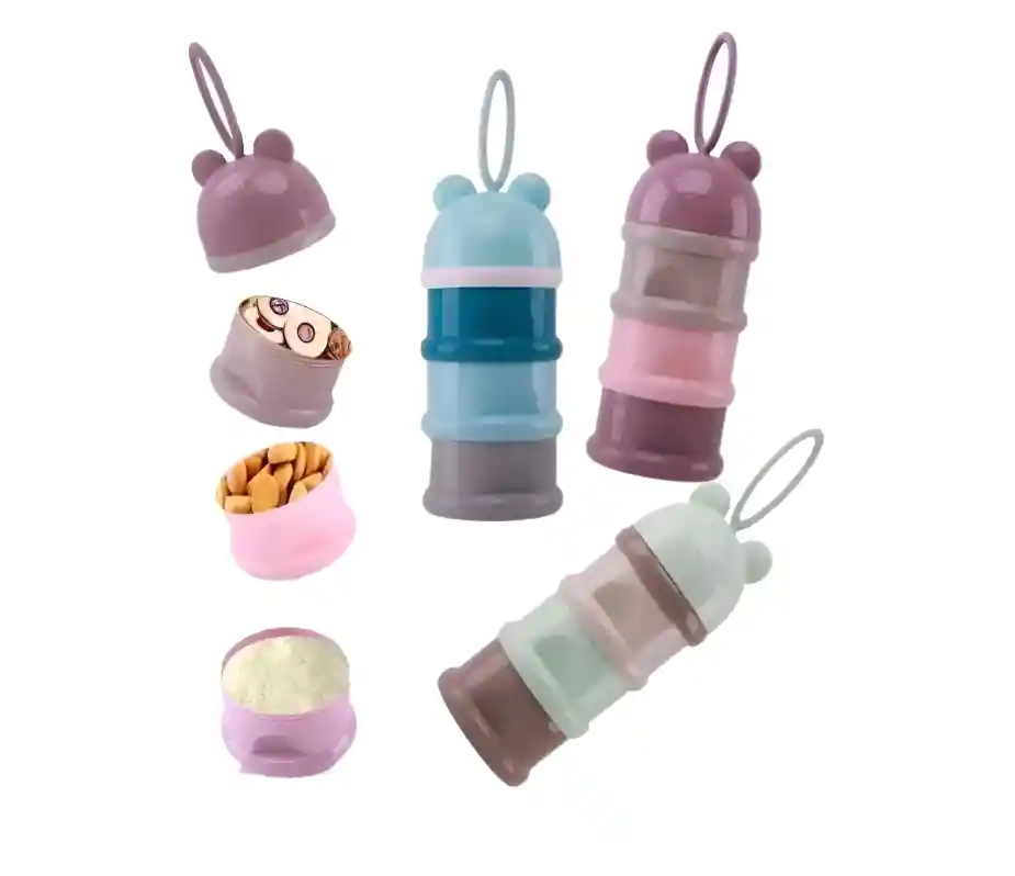 Cómodo de llevar: bonita caja de leche en polvo para bebé, diseño de dibujos animados en la cabeza, fácil de llevar, es adecuado para madres y bebés para salir y jugar. Diseño de 3 capas, conveniente para poner cantidad de leche en polvo a tomar en cada capa. Multifuncional, también se puede utilizar para almacenar aperitivos, frutas, dulces, avena, harina de maíz, nueces y otros alimentos para bebés. Bonita forma de dibujos animados.