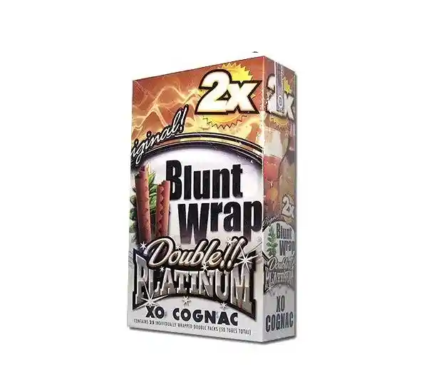 Blunt Wrap Platinum papelillo saborizado para fumar, en empaque sellado que garantiza frescura y sabor. Blunt Wrap Sabor XO Cognac. Cada sobre contiene 2 Wraps. Display 25 sobres