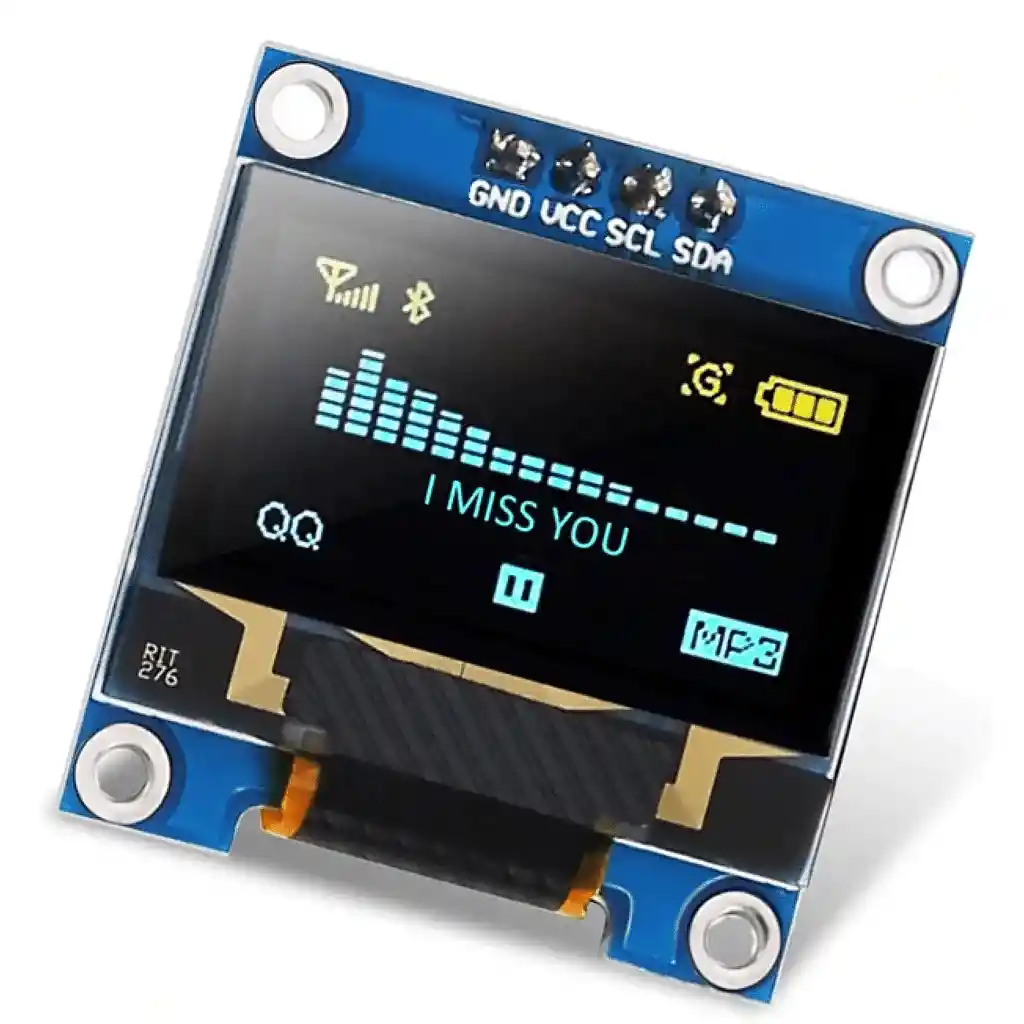 Pantalla OLED de 0,96″ de color azul y 128 x 64 pixeles, con conectividad I2C, utiliza el módulo SSD1306 compatible con Arduino y Raspberry Pi. Características: Modelo: OLED-SSD1306 Voltaje de funcionamiento: 3,3 V – 5V; Tamaño: 0,96″ pulgadas Comunicación: I2C