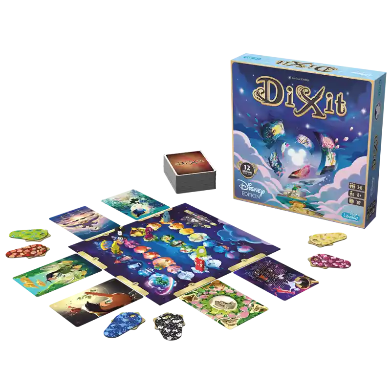 ¡Dixit, el celebrado clásico moderno que ha conmovido a millones de jugadores de todo el mundo se cruza con el universo Disney! Un nuevo Dixit independiente con 84 nuevas cartas maravillosas, basado en las famosas películas de Disney y Pixar, desde Blancanieves a Red. Las mismas reglas de Dixit con nuevo material, de 3 a 6 jugadores, con tablero, diales de votación, fichas de madera... ¡Todo recubierto con la magia de Disney!