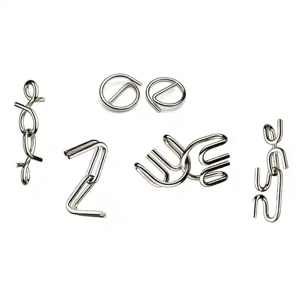 Juegos de Paciencia 6 Grandes Rompecabezas de Metal Para Trabajar la Paciencia y Hacer Que tu Cerebro Trabaje Duro. Material: Metal Medidas: Caja 21.5 x 21.5 x 4 cm País Marca: Francesa Edad: Desde 7 Años Advertencia: Producto no Apto Para Niños Menores de 3 Años. Puede Contener Partes Pequeñas Que al Ser Ingeridas y/o Inhaladas Por Menores de 3 Años Puede Producir Asfixia.